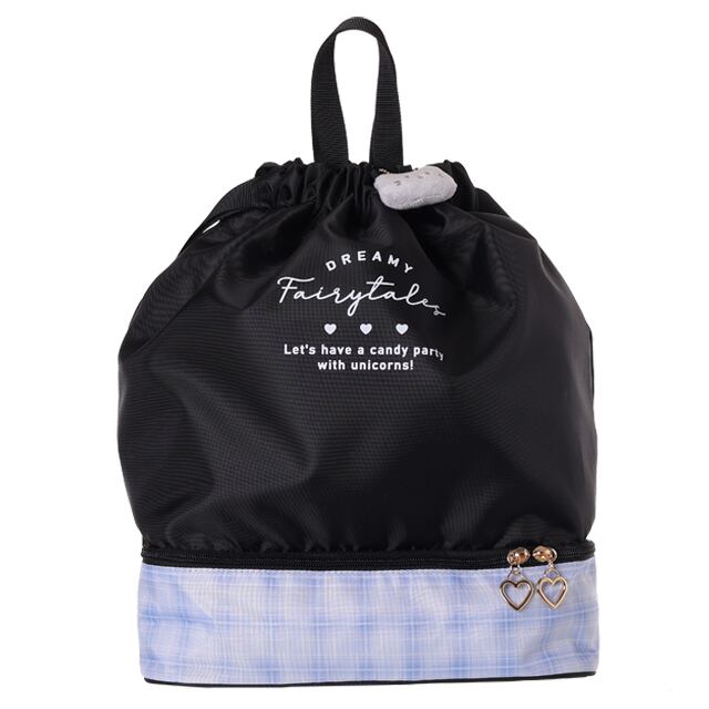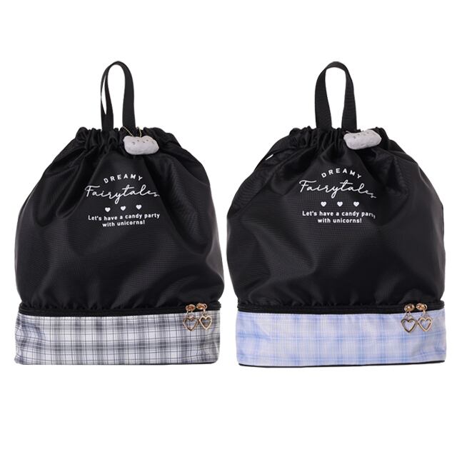 商品名:Coboca+ポリチェックネコぬい付2層式ナップサック