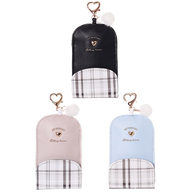 商品名:Coboca+合皮チェックハートプレートリールキーケース