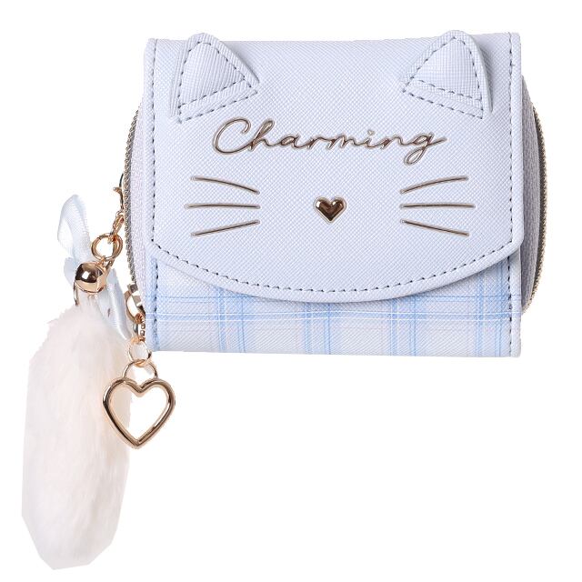 商品名:Coboca+合皮ネコフェイスチェックミニ財布