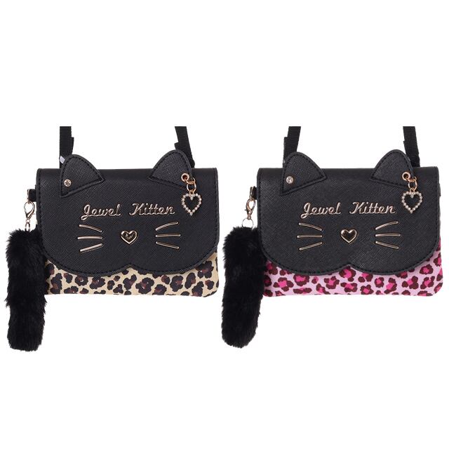 商品名:Coboca+合皮ネコフェイスヒョウ柄マルチポケット