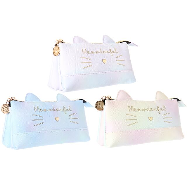 商品名:合皮ネコフェイスxグラデ3ポケットポーチ(ミミ付)