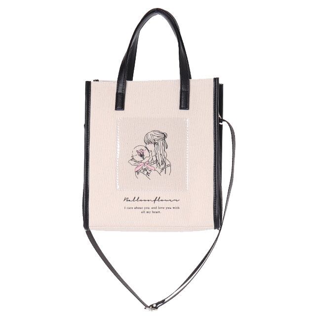 【C00212】Coboca+帆布×合皮ラインアート2WAYショルダー(フラワー)