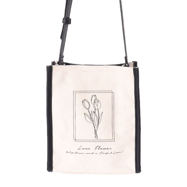 【C00210】Coboca+帆布×合皮ラインアート縦型ショルダー(チューリップ)