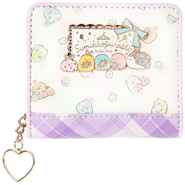 【L21172】すみっコ総柄×チェックラウンドファスナー札入