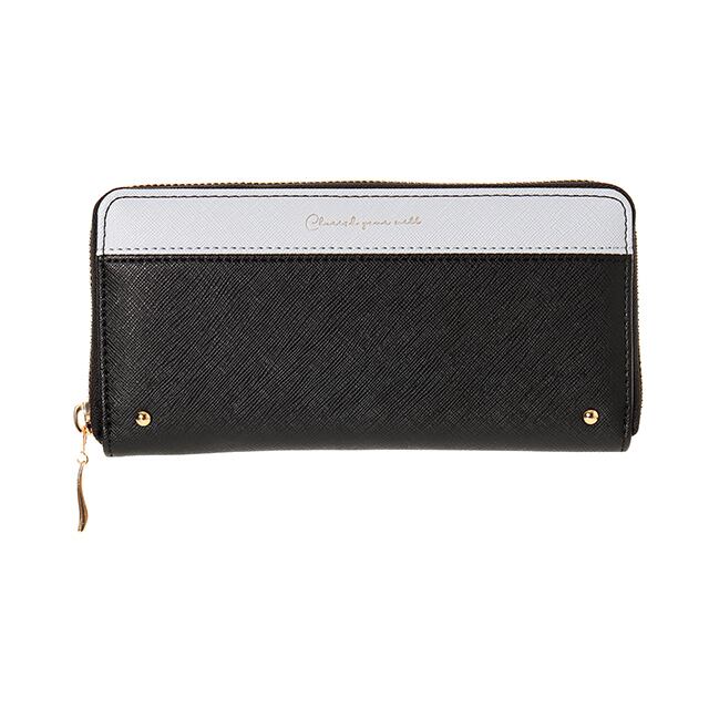 【W21184】合皮2カラーロゴ箔押しラウンドファスナー束入