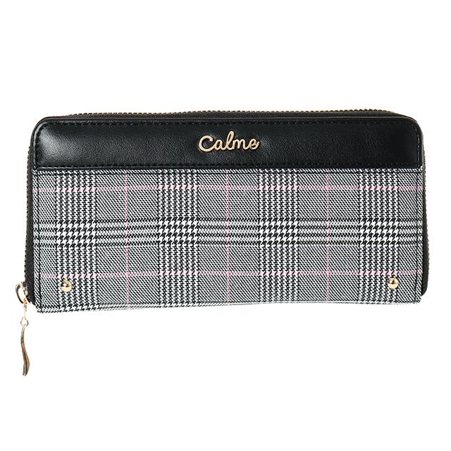 【W21242】合皮×グレンチェックプレート付ラウンドファスナー束入