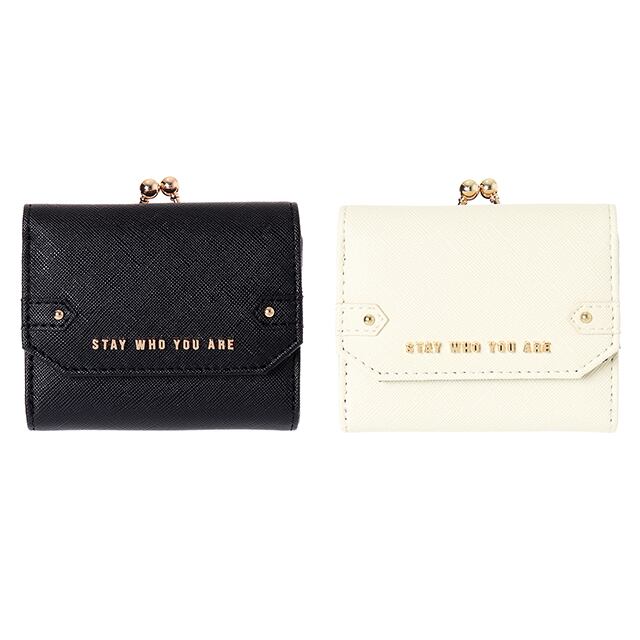 【W21187】合皮ロゴプレート付サイドベルト口金ミニ財布