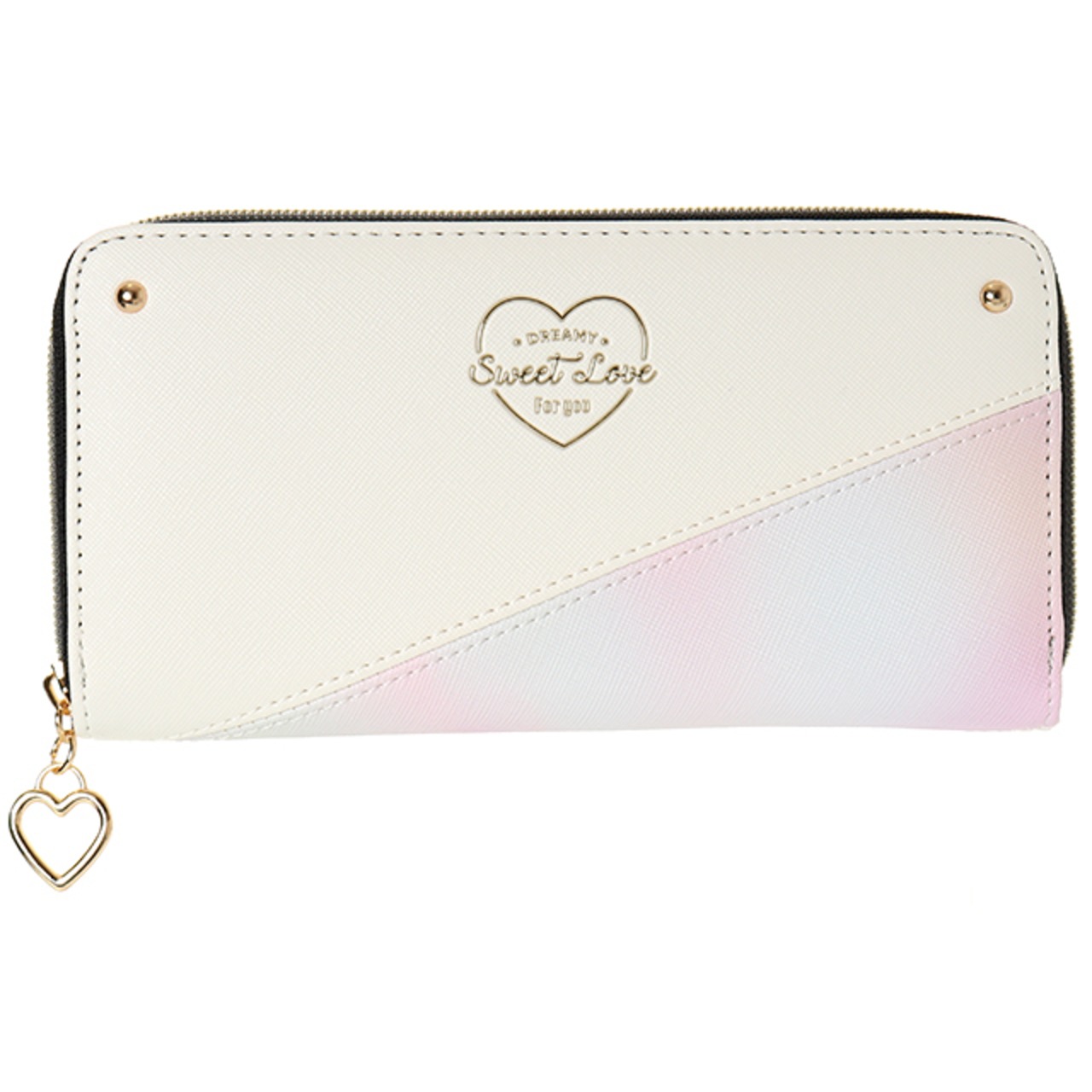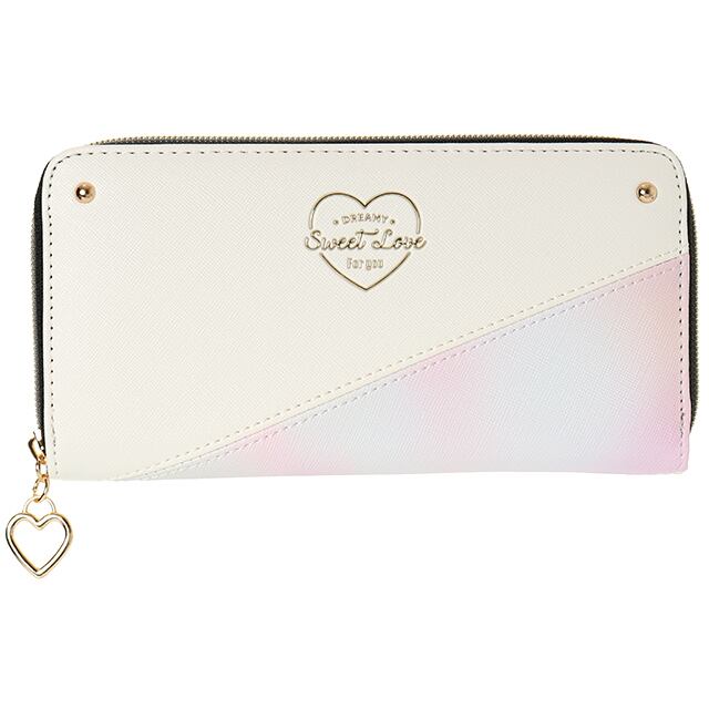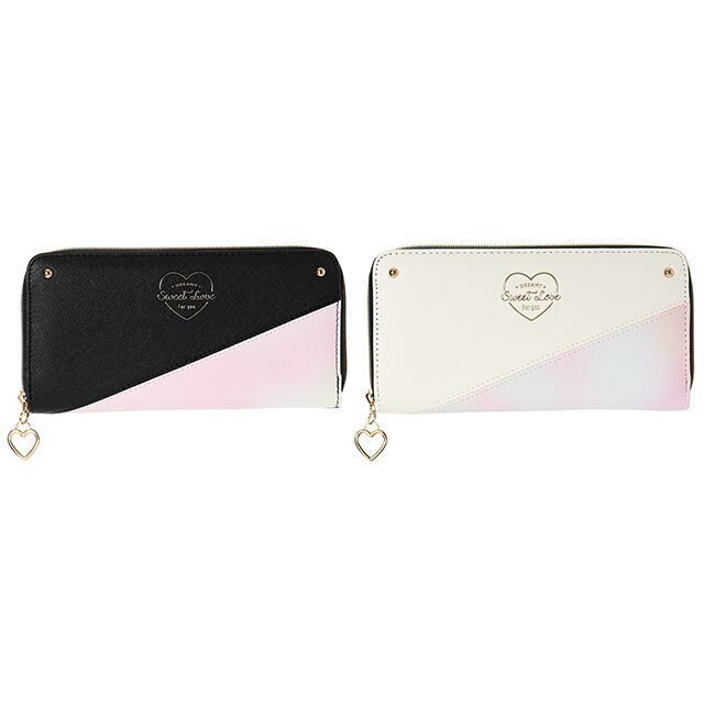 【L21394】合皮×グラデーションハートTPU ラウンドファスナー束入