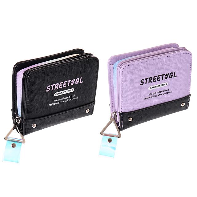 【L21472】合皮ロゴラウンドファスナー札入(グラデーションファスナー)
