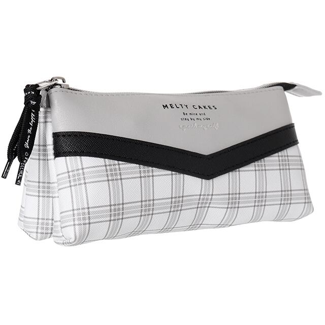 【C08203】Coboca+合皮Vカットチェック3ポケットペンポーチ