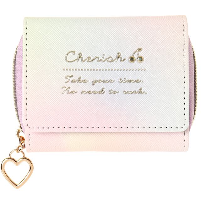 【L21397】合皮グラデチェリーロゴTPUミニ財布