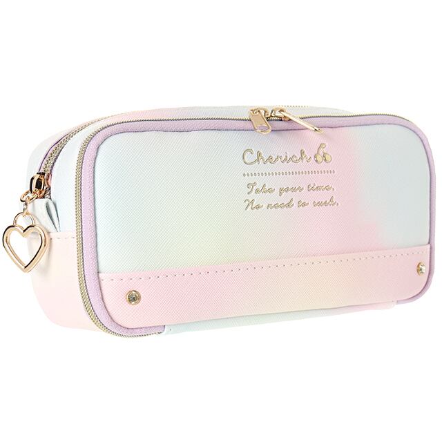 【Z21776】合皮グラデチェリーロゴTPU多機能ペンポーチ