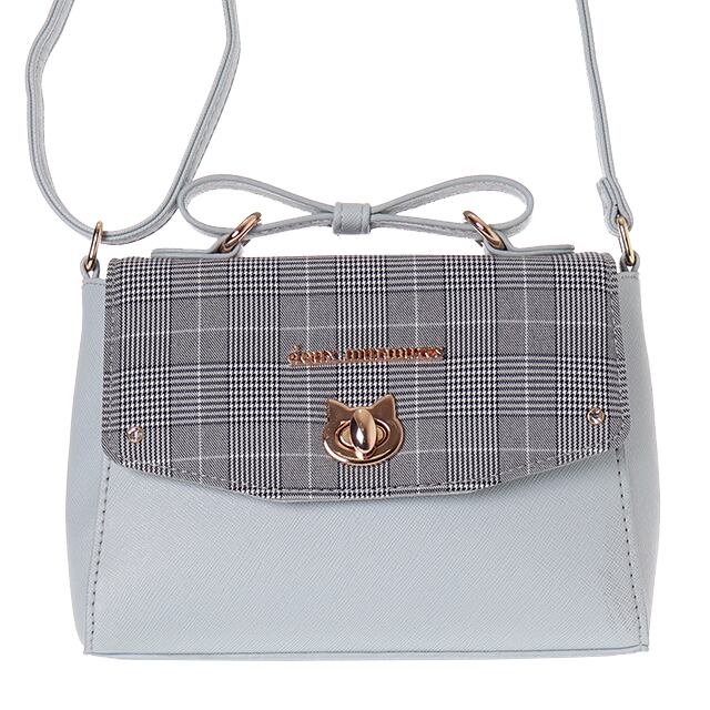 【C00122】Coboca+軽量合皮グレンチェックネコヒネリミニショルダーⅡ