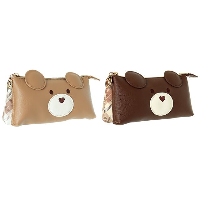 【Z22684】合皮クマフェイス3ポケットペンポーチ