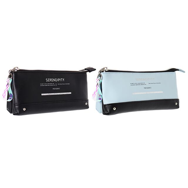 【Z22741】合皮メタリックロゴ3ポケットペンポーチ