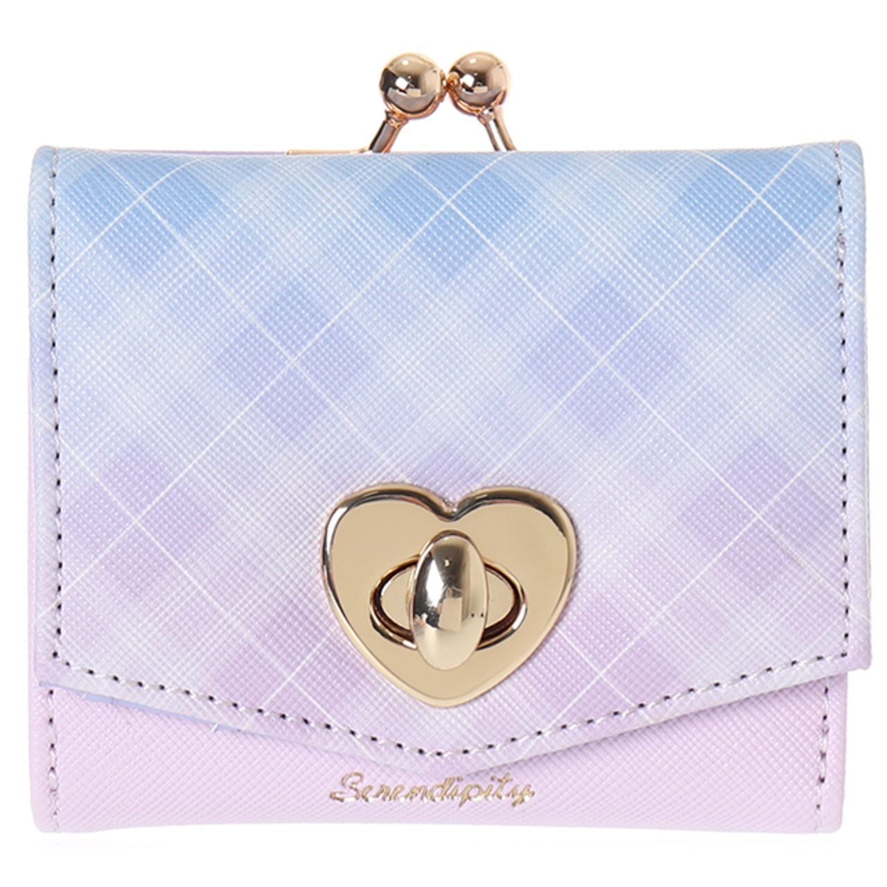 商品名:合皮グラデチェックハートひねり口金ミニ財布
