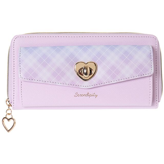 【L22366】合皮グラデチェックハートひねり前ポケット ラウンドファスナー束入