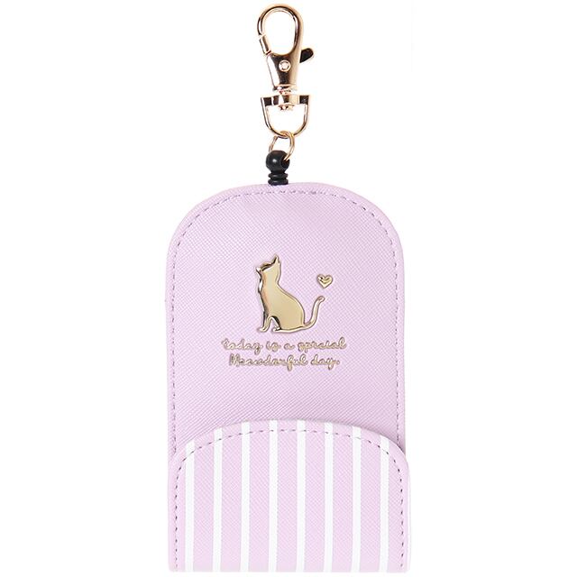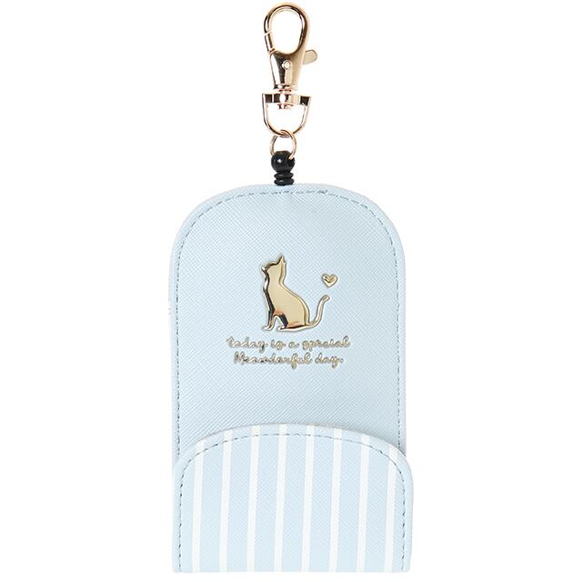 【C05212】Coboca+SIAA合皮ネコ×ストライプリール付キーケース