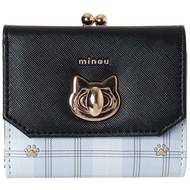【C05297】Coboca+SIAA合皮チェックネコヒネリ口金ミニ財布