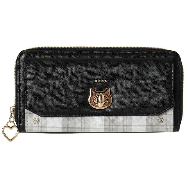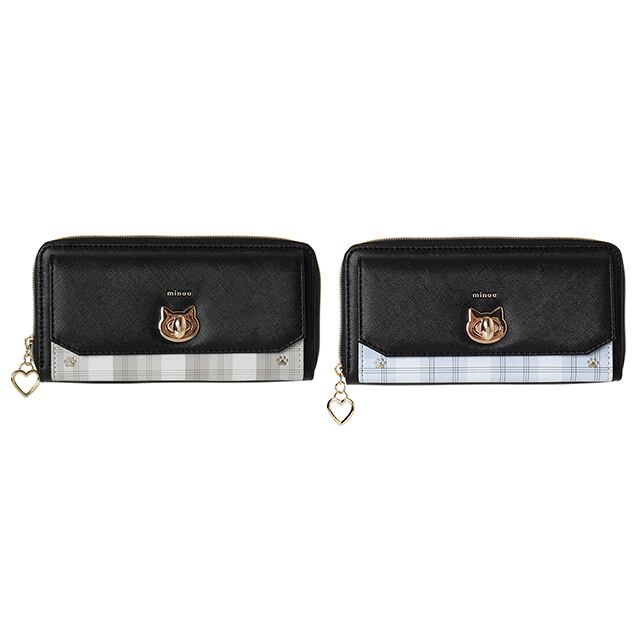 【C05298】Coboca+SIAA合皮チェックネコヒネリラウンドファスナー束入