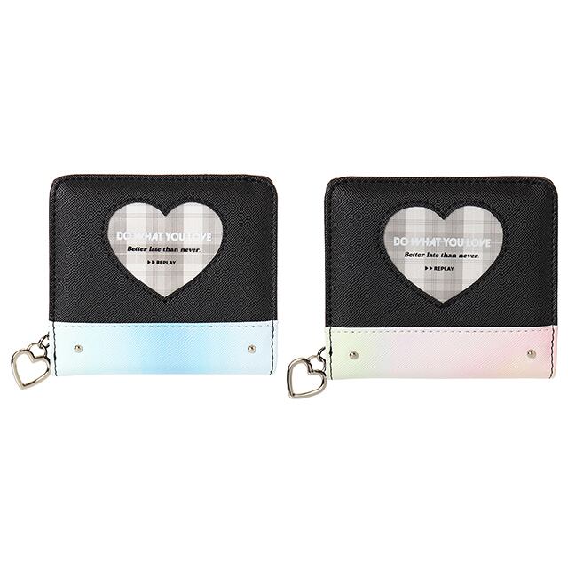 【C05328】Coboca+合皮チェックハートラウンドファスナー札入