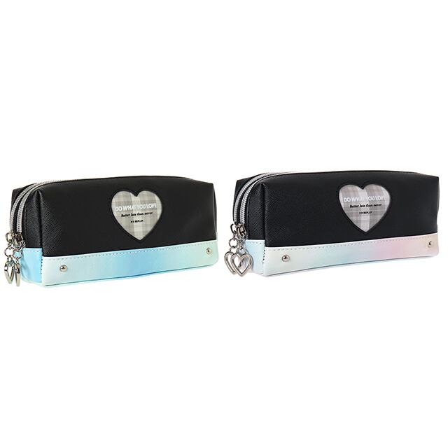 【C08221】Coboca+合皮チェックハートWファスナーペンポーチ