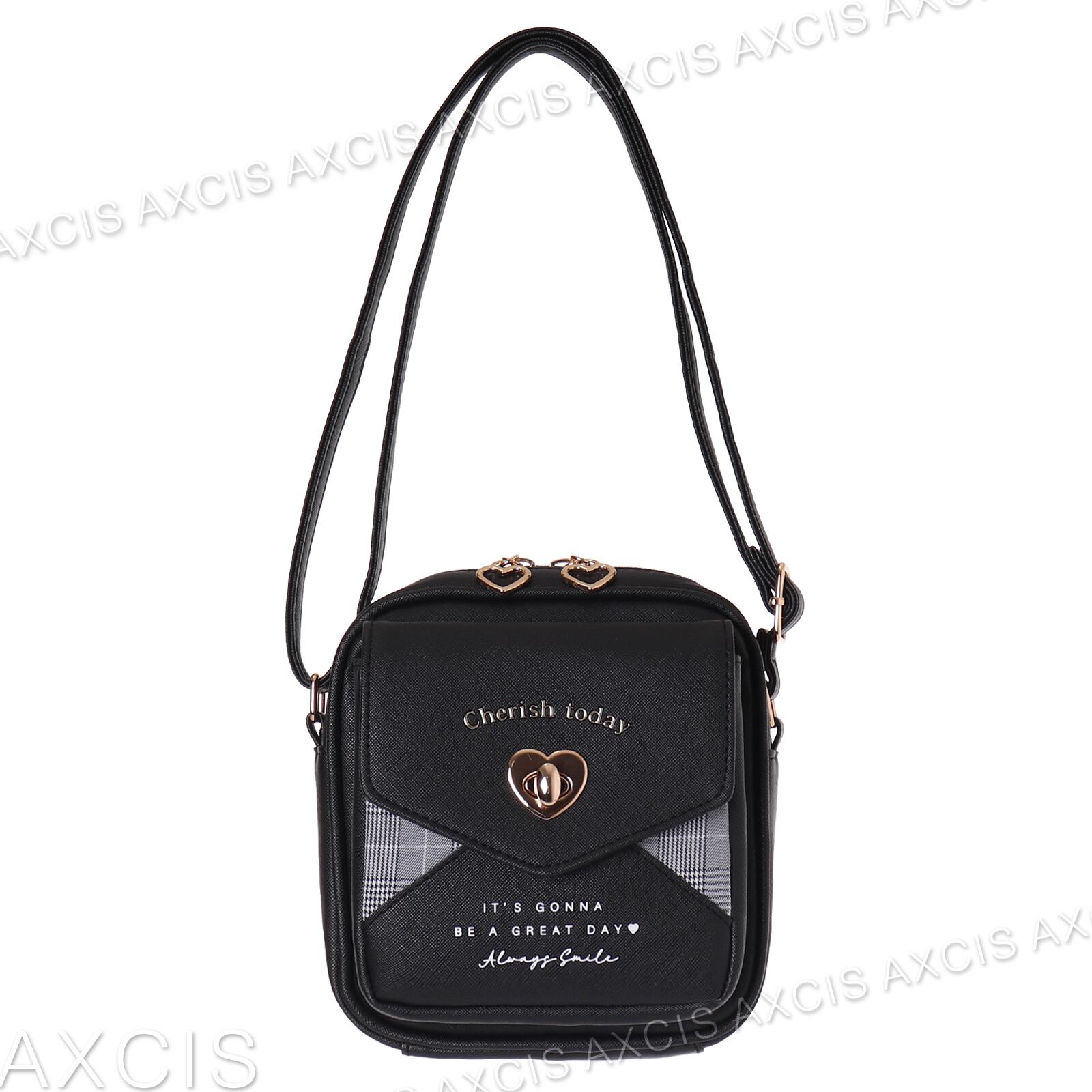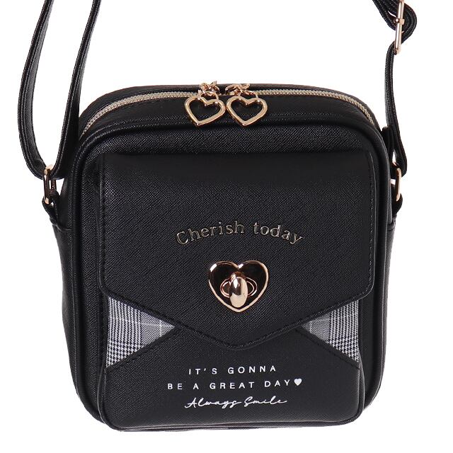 【C00203】Coboca+合皮グレンチェックハートヒネリポシェット