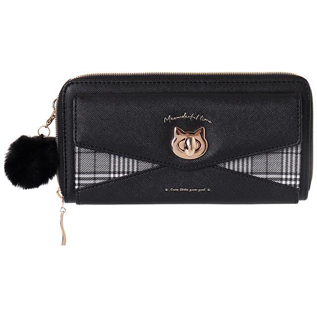 【C05343】Coboca+合皮グレンチェックネコヒネリラウンドファスナー束入