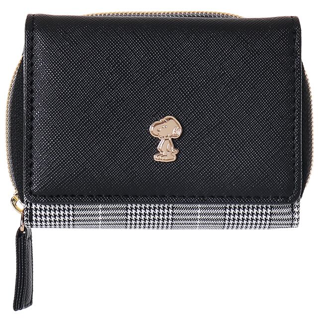 【L22083】SNOOPY合皮×グレンチェックミニ財布