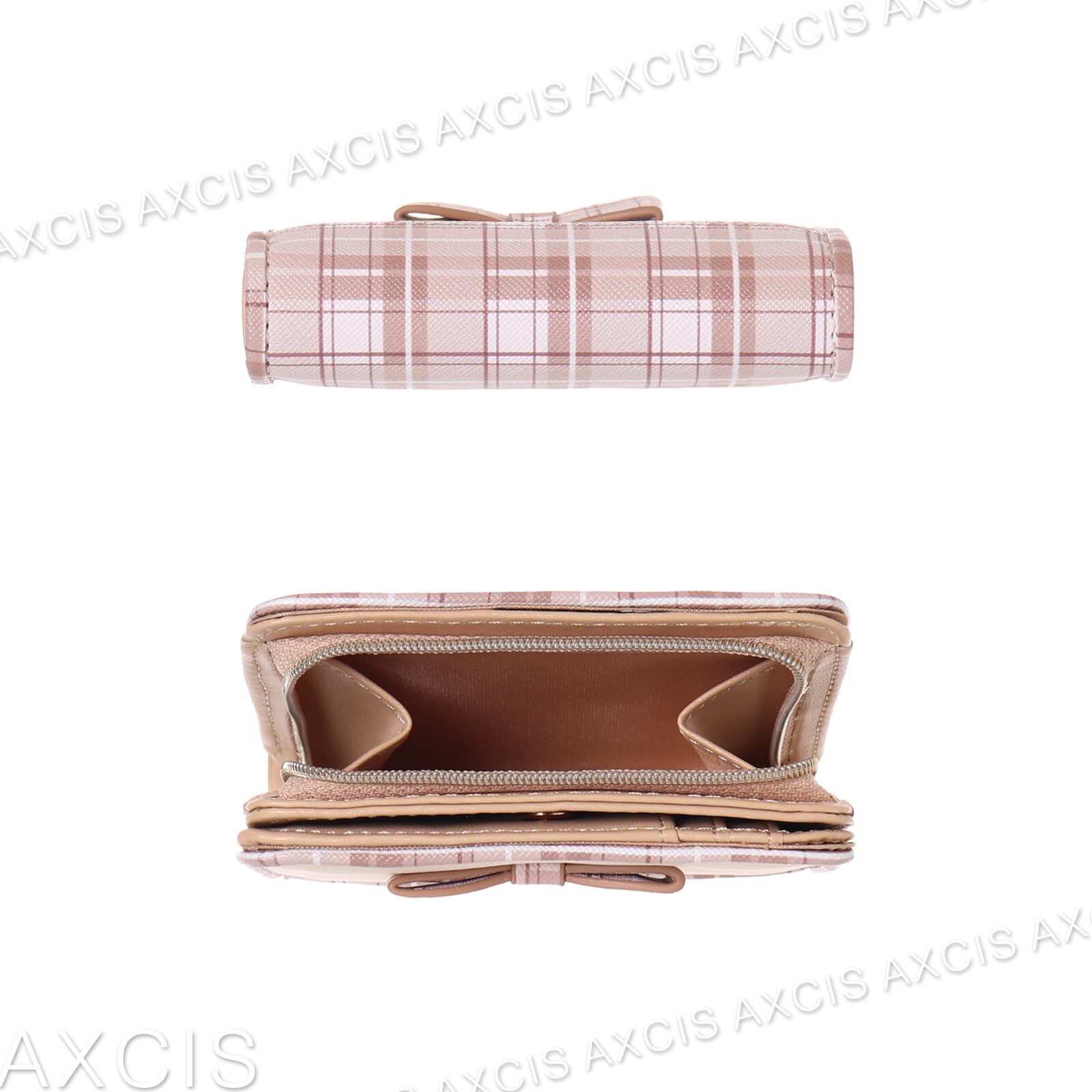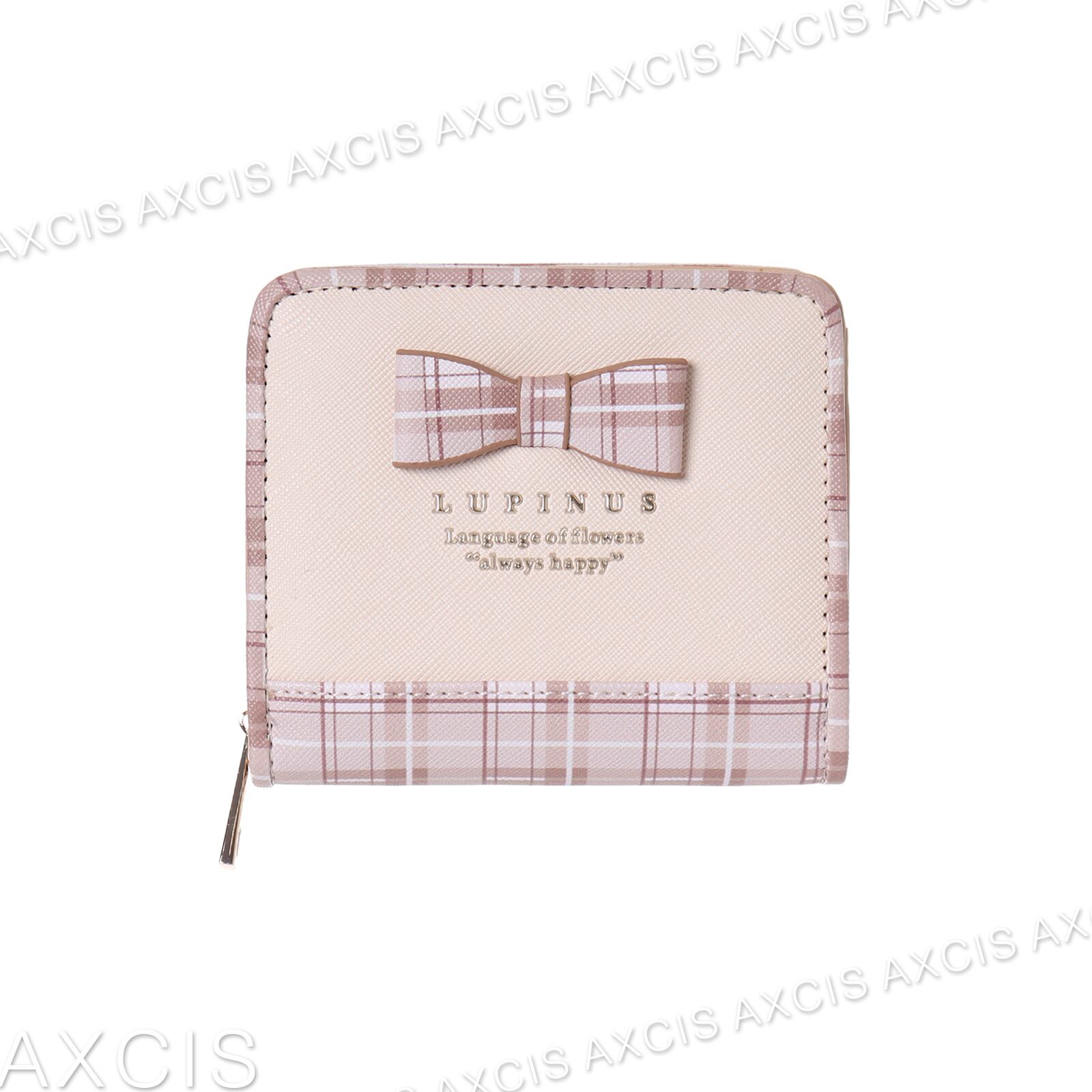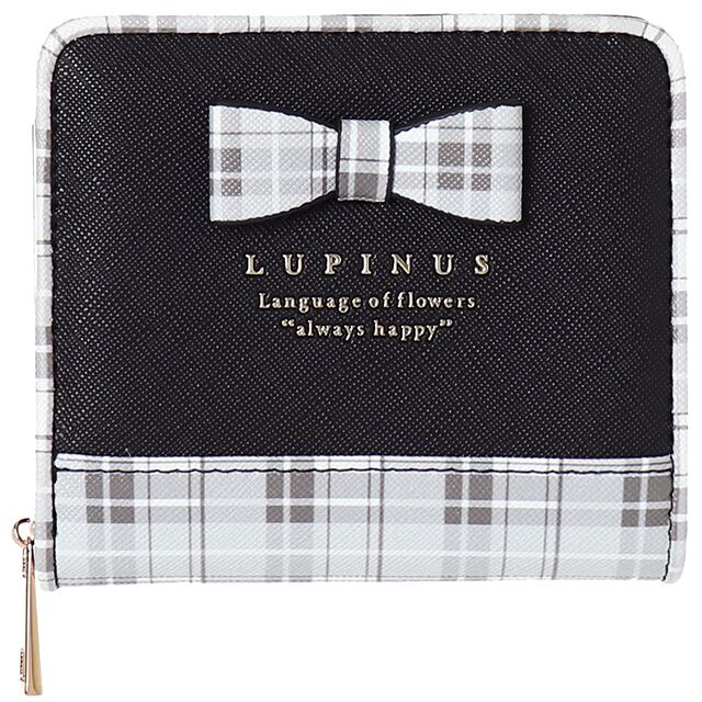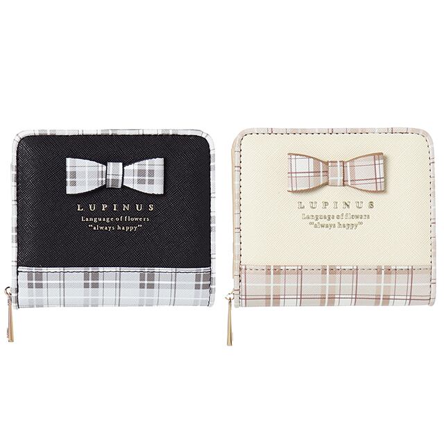 【C05446】Coboca+合皮チェックリボン付ラウンドファスナー札入