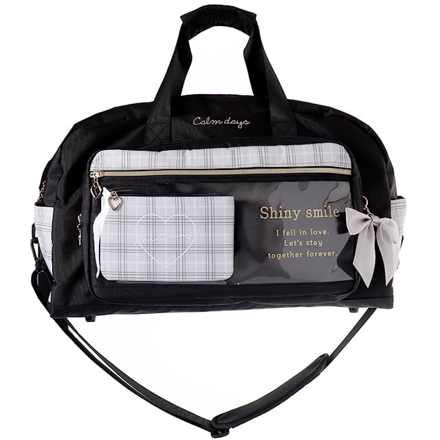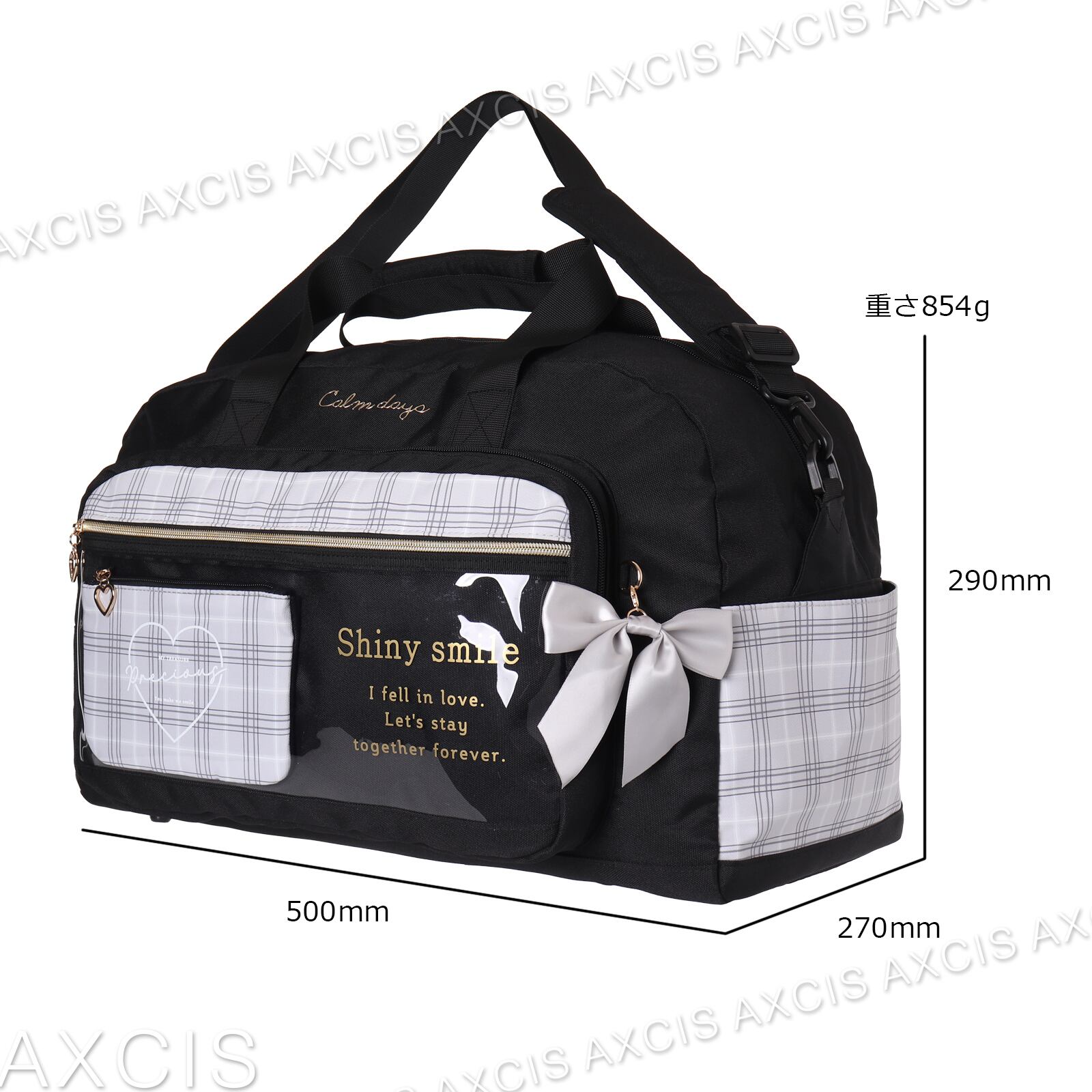 【C23124】Coboca+リサイクルポリ チェックポーチリボン付トラベルボストン