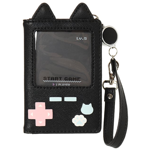 【L23348】Osel合皮ネコGAME二つ折パス(デコフィルム)
