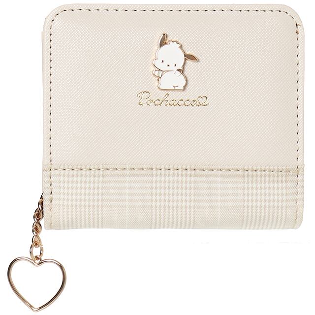 【L23044】ポチャッコ合皮チェックプレート付ラウンドファスナー札入