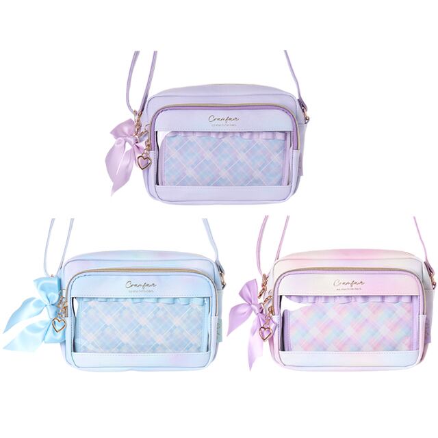 【C23360】Osel Coboca+合皮グラデチェックリボン付ミニショルダー