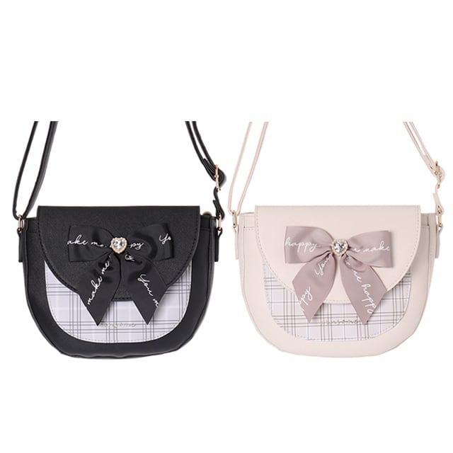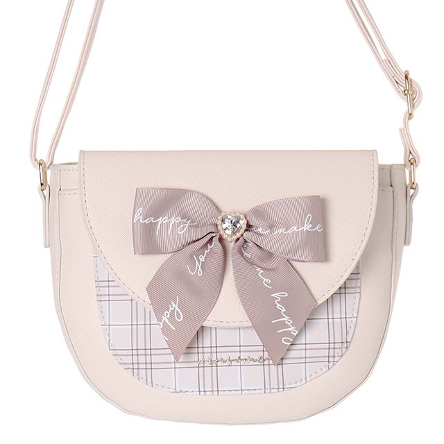 【C23194】Coboca+合皮チェックロゴリボンビジュー付ミニショルダー