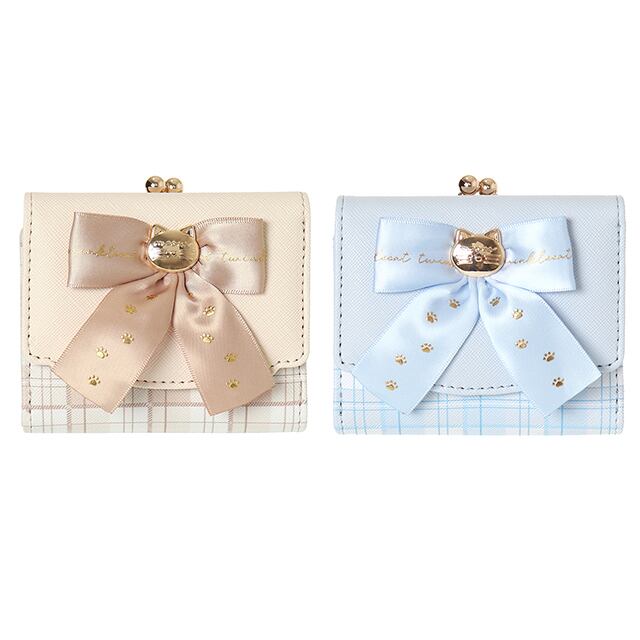 商品名:Coboca+合皮チェックネコリボン口金ミニ財布