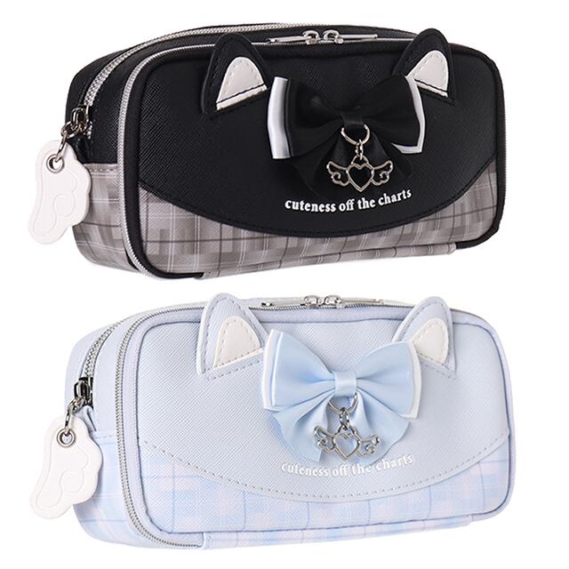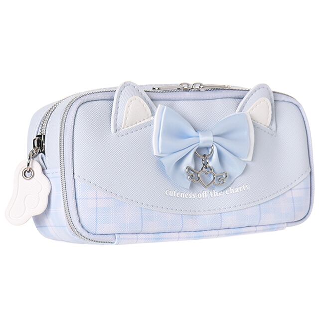 【C08416】Coboca+合皮ネコ羽チャームリボン多機能ポーチ