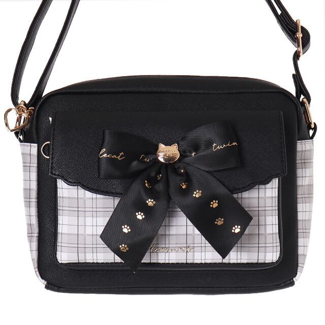 【C23163】Coboca+合皮チェックネコ金具リボンショルダー
