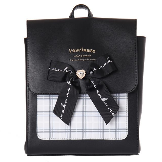 【C23207】Coboca+合皮チェックロゴリボンビジュー付ミニD