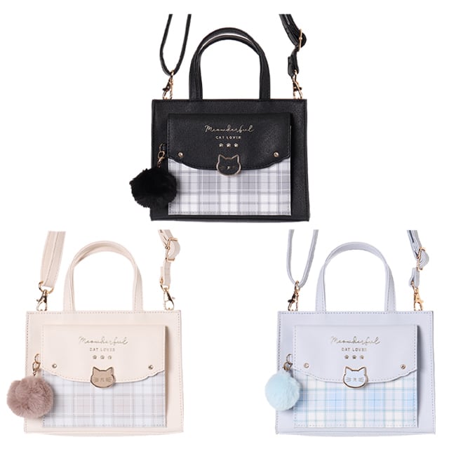 【C23236】Coboca+合皮チェックネコホック2WAYショルダー(チャーム)