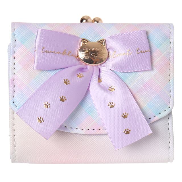 【C05558】Coboca+合皮グラデチェックネコリボン口金ミニサイフ