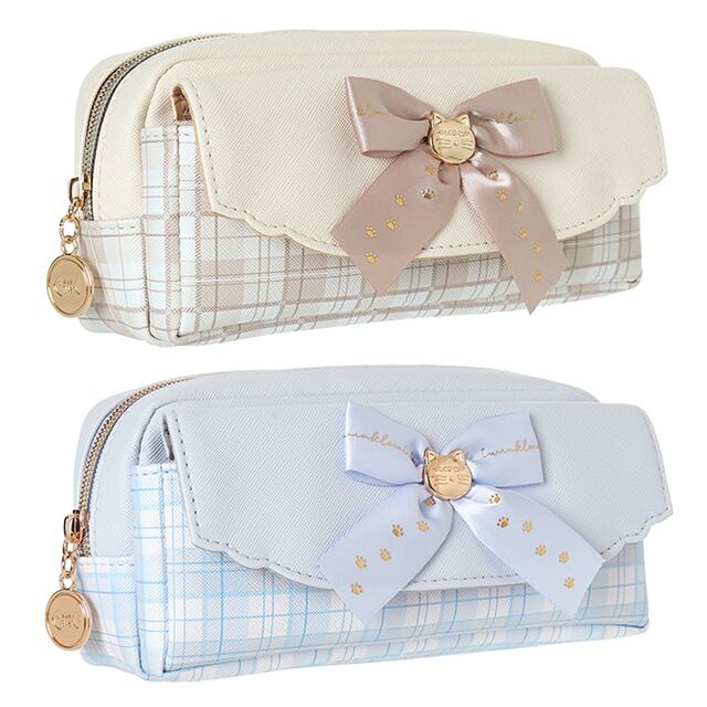 【C08506】Coboca+合皮チェックネコリボン前ポケット付ポーチ