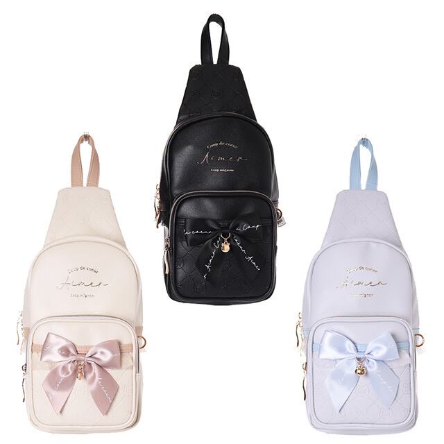 【C23165】Coboca+合皮ネコモノグラムフォントリボンボディバッグ