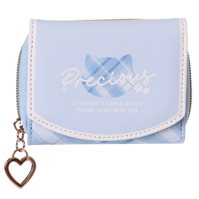 商品名:合皮チェックネコフェイスプリントミニ財布
