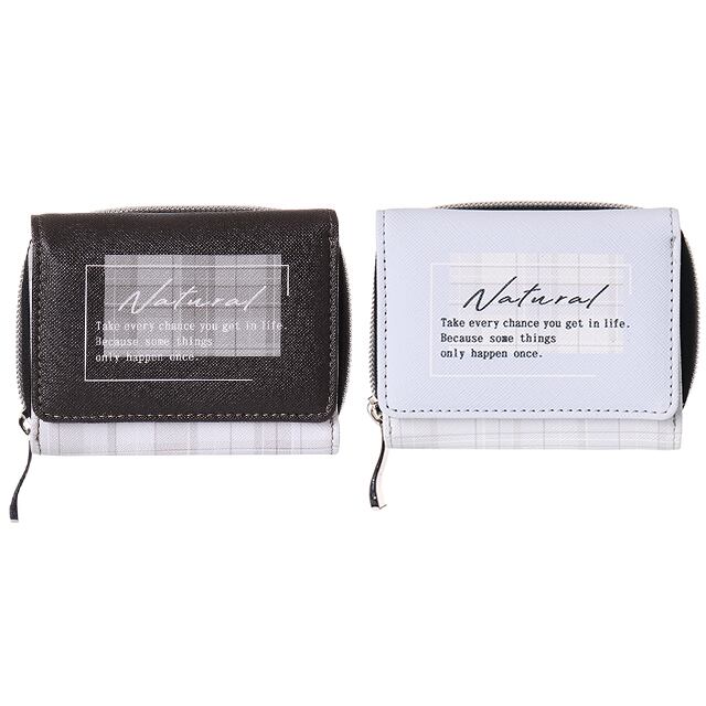 【L24401】合皮チェックロゴミニ財布(Natural)