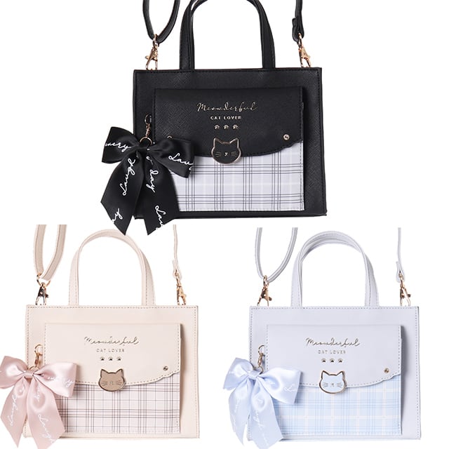 【C24151】Coboca+合皮チェックネコプレートリボン2WAYショルダー