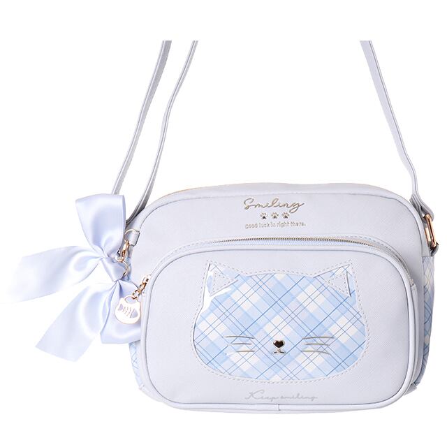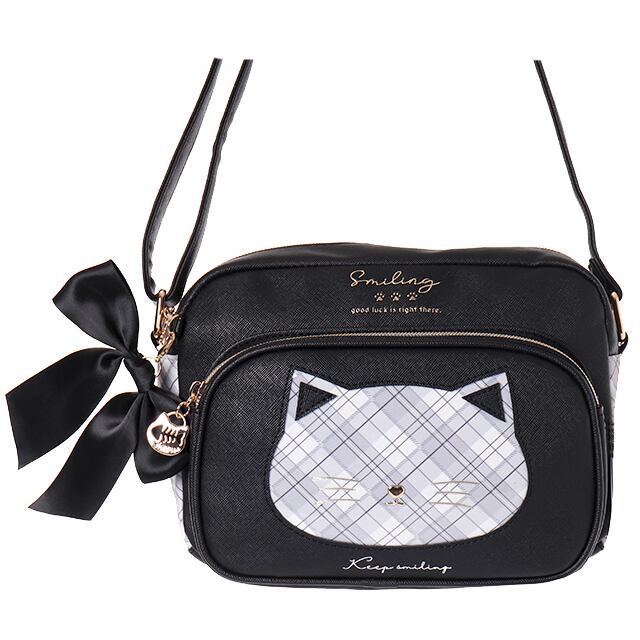 【C24161】Coboca+合皮チェックネコ窓リボン付ショルダー