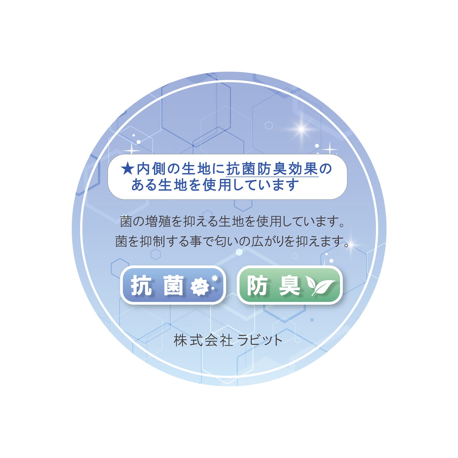 抗菌加工を施し、防臭効果のある生地を使ったアイテムで、
